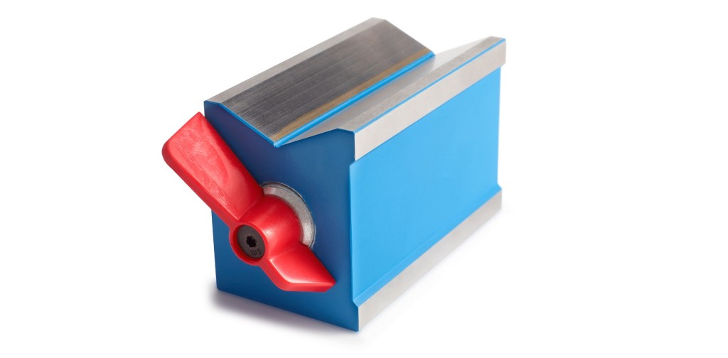 Two of them have a 90º “V”. They are very useful for holding irregular and cylindrical objects, and it is magnetism is turned on and off by turning the handle 90º. They are totally impervious to cutting oils, so it is possible for the block to work submerged in them (for example, in electro-erosion machines).